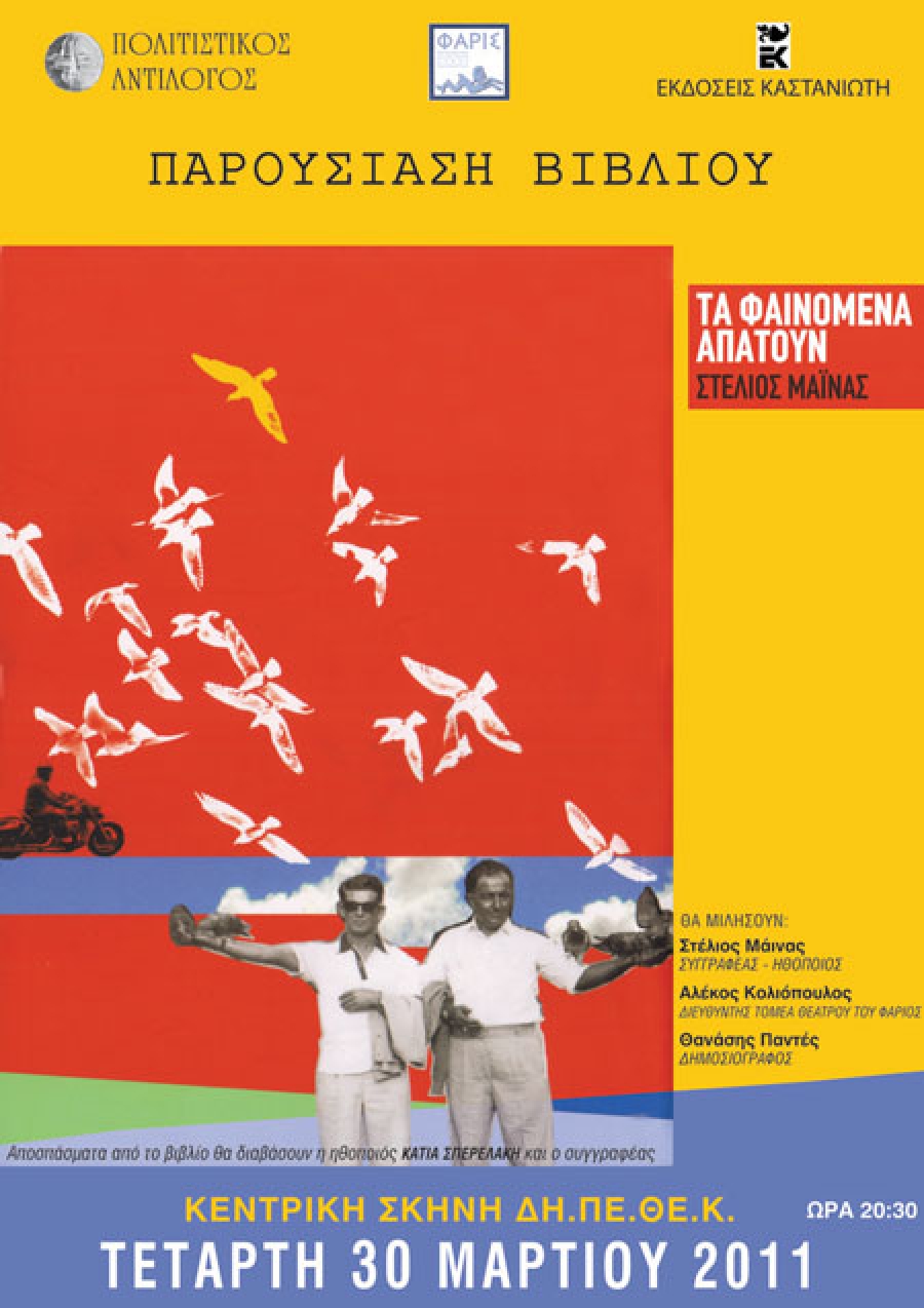 Ο Πολιτιστικός Αντίλογος σε συνεργασία με την Κοινωφελή Επιχείρηση του Δήμου Καλαμάτας «ΦΑΡΙΣ» και τις εκδόσεις Καστανιώτη διοργανώνει παρουσίαση του βιβλίου του Στέλιου Μάινα “Τα φαινόμενα απατούν”.