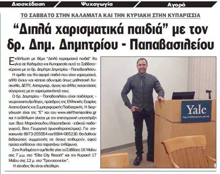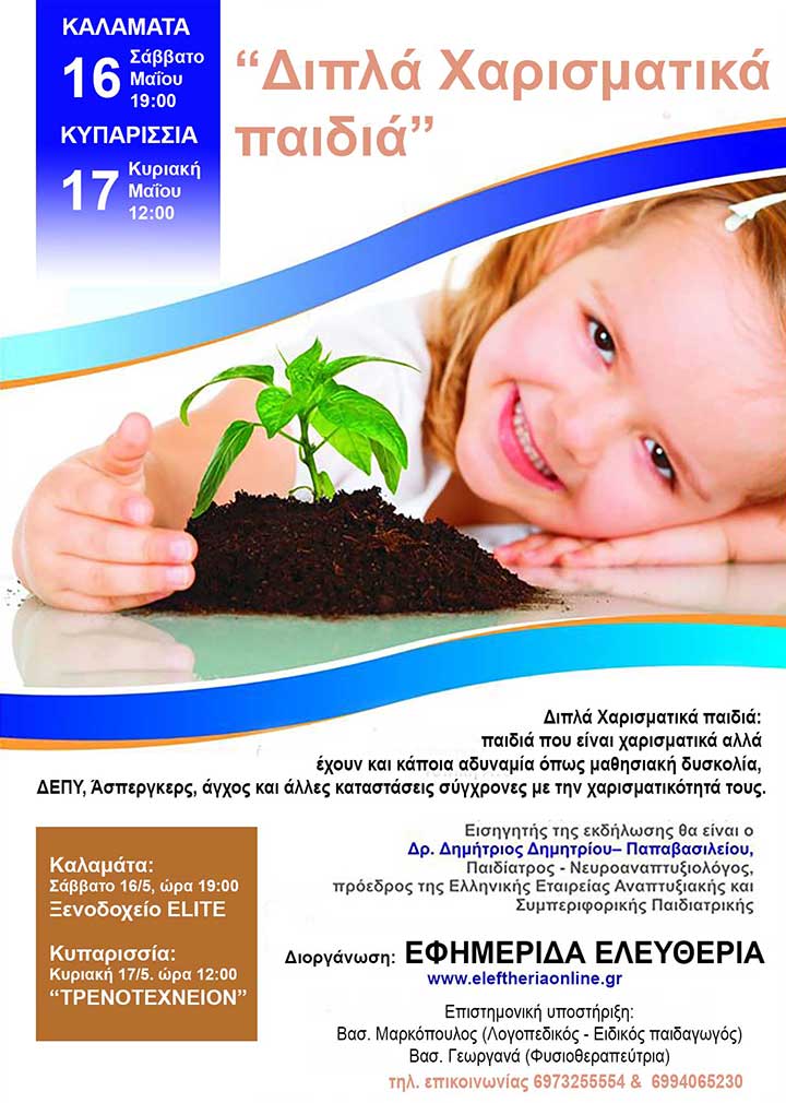 Εισηγητής της εκδήλωσης θα είναι ο Δρ. Δημήτριος Δημητρίου - Παπαβασιλείου, Παιδίατρος - Νευροαναπτυξιολόγος, πρόεδρος της Ελληνικής Εταιρίας Αναπτυξιακής και Συμπεριφορικής Παιδιατρικής
