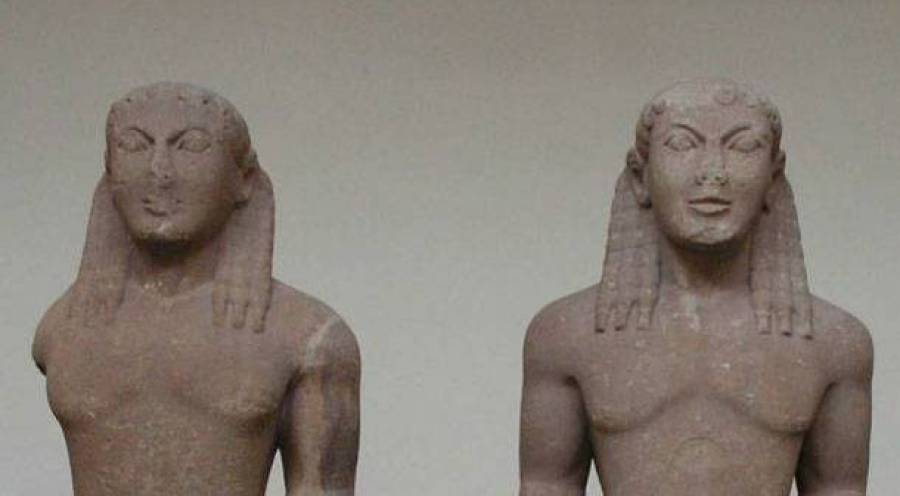 Οι δίδυμοι Κούροι, οι οποίοι χρονολογούνται στον 6ο αι. πΧ, βρέθηκαν σε κομμάτια, όπως δυστυχώς επιτάσσει η εγκληματική συνήθεια των αρχαιοκαπήλων, καθώς σπασμένα τα έργα μεταφέρονται και κρύβονται ευκολότερα. Σε φυσικό ύψος, κάτι παραπάνω από 1,80 και με μικρή διαφορά ύψους, τα δύο αγάλματα σώζονται σήμερα σε 12 συγκολλούμενα τμήματα το πρώτο (που βρίσκεται σε καλύτερη κατάσταση διατήρησης) και σε 14 το δεύτερο. Ο εντοπισμός τους εμπλούτισε τις γνώσεις μας για την αρχαϊκή τέχνη (ανήκουν σε περίοδο και περιοχή από τις οποίες δεν υπάρχουν πολλά παρόμοια δείγματα), ενώ βοήθησε στην ανεύρεση ενός εκτεταμένου νεκροταφείου των 6ου, 5ου και 4ου αι. πΧ. Εντός του βρέθηκαν και οι μοναδικοί σε αυτό το νεκροταφείο δίδυμοι σαρκοφάγοι, πάνω από τους οποίους έστεκαν ως επιτάφια σήματα οι δύο κούροι.