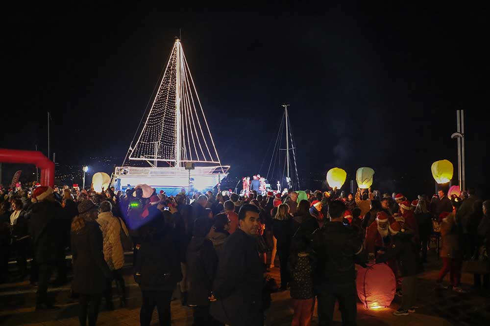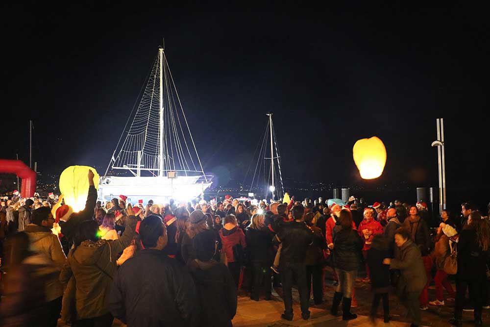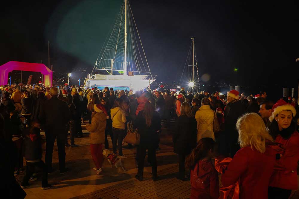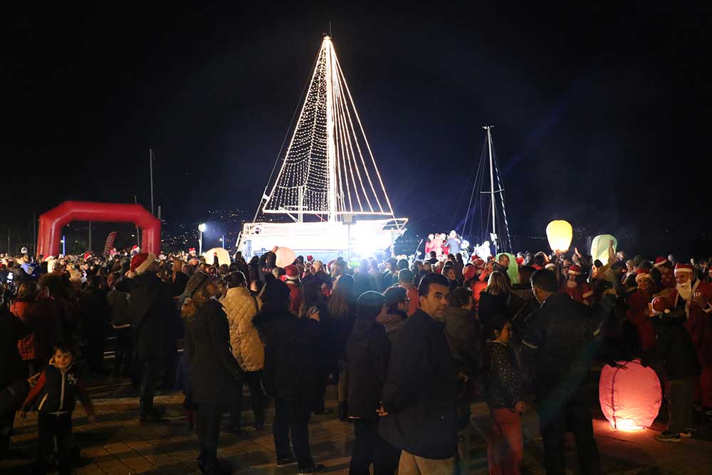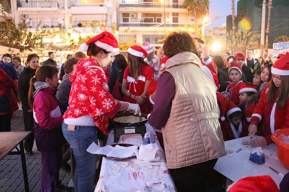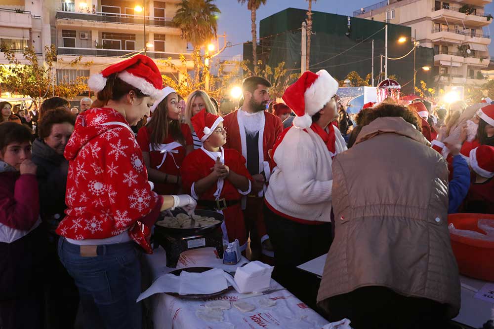 Μετά την ολοκλήρωση του 1ου Santa Run ξεκίνησαν οι χριστουγεννιάτικες εκδηλώσεις στην παραλιακή ζώνη. Μέλη του Πολιτιστικού Συλλόγου Βέργας κερνούσαν λαλαγγίδες τους παρευρισκόμενους, ενώ αερόστατα ομόρφυναν την βραδιά.