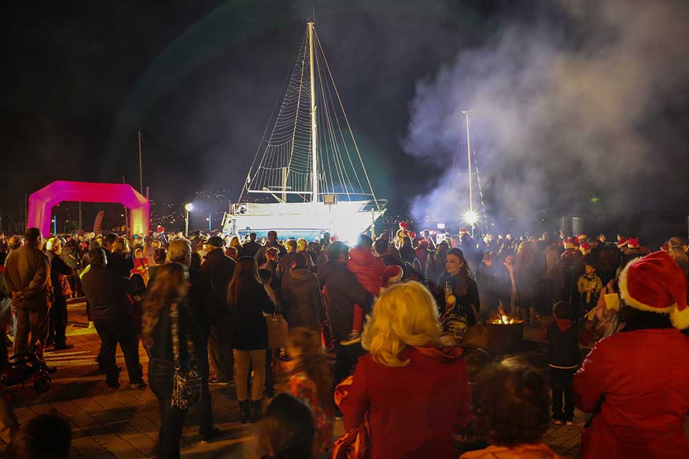 Φωταγωγήθηκε το χριστουγεννιάτικο καράβι στην Καλαμάτα (βίντεο και φωτογραφίες)