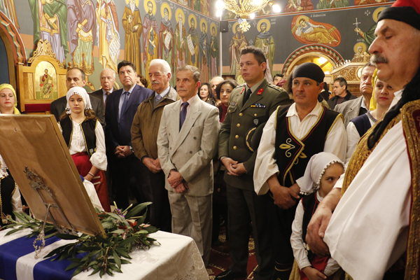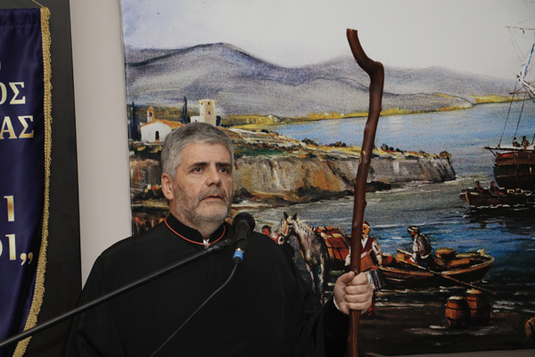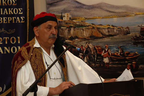 Το λόγο πήρε ο Νίκος Ζαχαριάς πρόεδρος του Τμήματος Ιστορίας του Πανεπιστημίου Πελοποννήσου στην Καλαμάτα. Αναφέρθηκε αρχικά στα ιστορικά γεγονότα της εποχής και στη συνέχεια υπογράμμισε τη "διακριτά ελληνική ιδιότητα της ηρωολατρείας, από την εποχή της αρχαιότητας". Διάβασε μάλιστα και ένα χαρακτηριστικό απόσπασμα από κείμενο του Πλάτωνα.