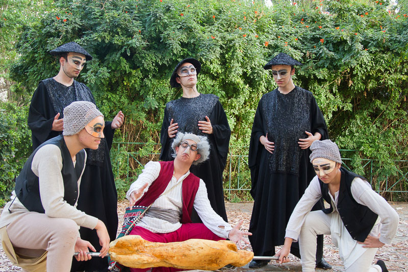 Χορός αγροτών και εργατών: Ρουμπίνη Αγγουρά, Φρόσω Ανδριώτη, Μαρίτα Αργυροπούλου, Εφη Αρχοντή, Κατερίνα Βασιλάκη, Νικολέττα Βασιλοπούλου, Παναγιώτα Βούλγαρη, Μαρία Γκέκα, Σέβη Δημητρακοπούλου, Κανέλλος Δημητριάδης, Γωγώ Καλογεροπούλου, Ιωάννα Κινινή, Ειρήνη Κλαπατσέα, Κωνσταντίνος Κουλόπουλος, Ολια Κουρούση, Κωνσταντίνος Κωνσταντακόπουλος, Γωγώ Μπάκα, Καλλιόπη Μπουζιάνη, Ελενα Μπούρα, Ηρώ Ξυνού, Λεωνιδία Παναγιωτοπούλου, Ιωάννα Παναγοπούλου, Ελένη Πανταζή, Νικόλας Παχτίτης, Αναστασία Πετροπούλου, Αριστείδης Σαμπάτης, Θανάσης Σουρίλας, Κωνσταντίνα Σταυροπούλου, Μιλένα Στεργιούλη, Σταματίνα Φωτοπούλου, Γεωργία Φουρτούνη. Θεωρία: Παναγιώτα Γεωργανά, Οπώρα: Γιολάντα Μητάκη, Μάντεις: Κανέλλος Δημητριάδης, Νικόλας Παχτίτης, Αριστείδης Σαμπάτης, Δρεπανουργός: Θανάσης Σουρίλας, Λοφοποιός: Γεωργία Φουρτούνη, Θωρακοποιός: Κωνσταντίνος Κουλόπουλος, Σαλπιγγοποιός: Λεωνιδία Παναγιωτοπούλου, Κρανοποιός: Μιλένα Στεργιούλη, Δορυξός: Ιωάννα Παναγοπούλου, Παιδί Λάμαχου: Ελένη Πανταζή, Παιδί Κλεώνυμου: Καλλιόπη Μπουζιάνη.