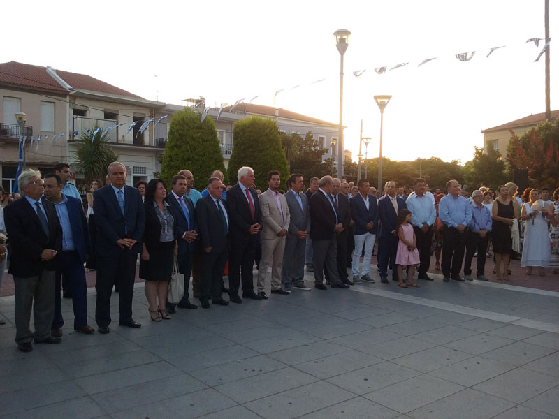 Ακολούθησε, στις 8.30, επιμνημόσυνη δέηση, κατάθεση στεφανιών, παρέλαση των σημαιών και μετάβασή τους στο χώρο της κεντρικής πλατείας.