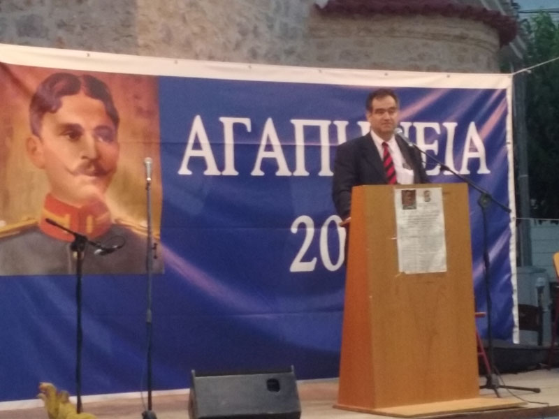 Εκεί απηύθυναν χαιρετισμό ο δήμαρχος Τριφυλίας Παναγιώτης Κατσίβελας και ο δήμαρχος Εδεσσας Δημήτρης Γιάννου και στη συνέχεια ακολούθησε ομιλία για τον ήρωα, από τον Θανάση Χρήστου, αναπληρωτή καθηγητή Νεότερης και Σύγχρονης Ιστορίας. Οι εκδηλώσεις ολοκληρώθηκαν με παραδοσιακούς χορούς από τα χορευτικά τμήματα του ΜΕΣΚ, του Συλλόγου Φιλοπρόοδων και του Μορφωτικού Συλλόγου Γαργαλιάνων.