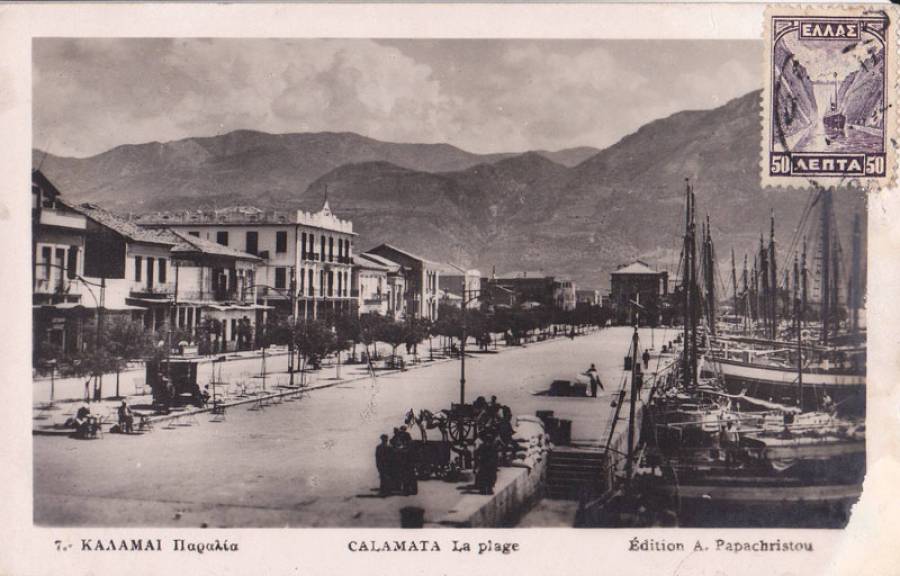 Η προκυμαία τη δεκαετία του 1930, απαθανατισμένη σε καρτ ποστάλ. Αριστερά το ξενοδοχείο "Αμέρικα" και τα σπίτια από τις δύο πλευρές του, στο βάθος το "Πανελλήνιον".