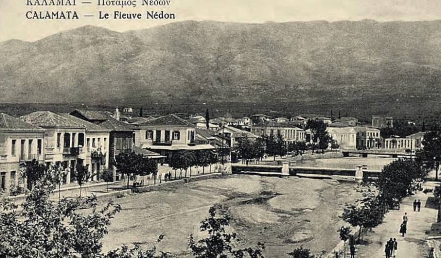 Γράφτηκε από την ΕΛΕΥΘΕΡΙΑ OnlineΟ Νέδοντας την εποχή του μεσοπολέμου, ίσως και νωρίτερα. Πρώτη διακρίνεται η γέφυρα Σταματελάκη (ή Καροτσαρέικη) στην προέκταση της Κολοκοτρώνη προς τη Θουρία. Στο βάθος διακρίνεται η γέφυρα στο ύψος της 23ης Μαρτίου.