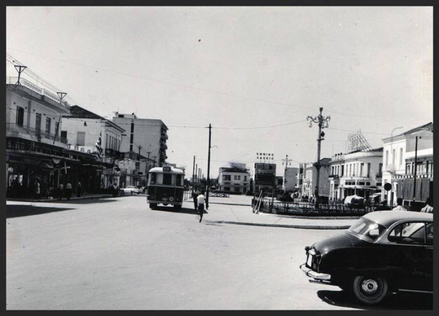 Ισως κάπου στα τέλη της δεκαετίας του 1960, με την πρώτη πολυκατοικία να ορθώνεται αριστερά, το παρτέρι μπροστά από το "Τριανόν", παλιά σπίτια και ολίγα αυτοκίνητα, με το αστικό να δεσπόζει.