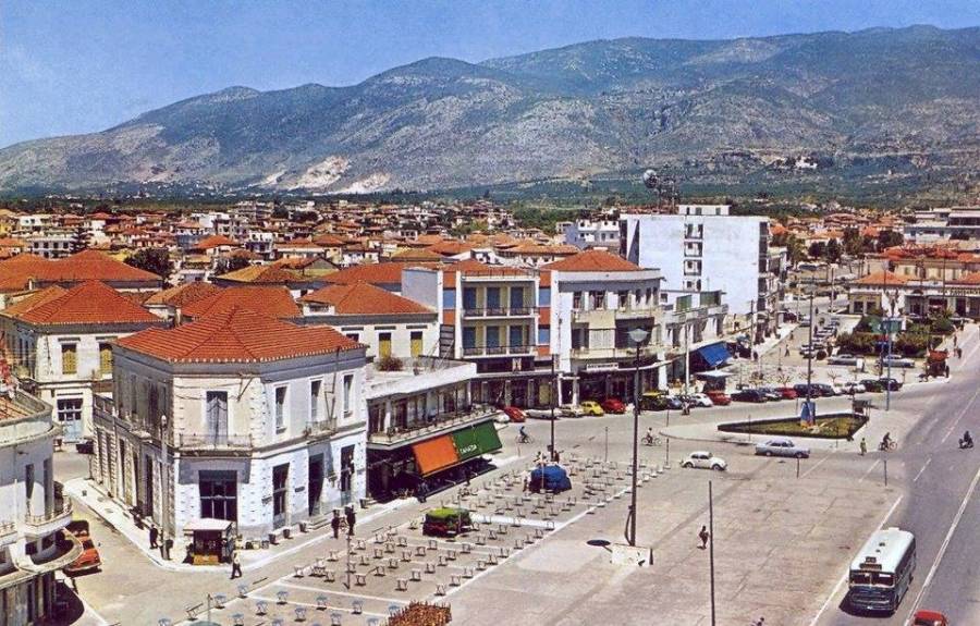 Η λήψη είναι ίσως από την πρώτη πολυκατοικία και απαθανατίζει τη βορειοδυτική πλευρά με την κεραμοσκεπή ακόμη Καλαμάτα των διωρόφων. Τα παρτέρια, το τρίγωνο μπροστά από το "Τριανόν" και ο μικρός δρόμος στη δυτική πλευρά της πλατείας. Μια εικόνα που άλλαξε μετά την ανάπλαση του 1973.