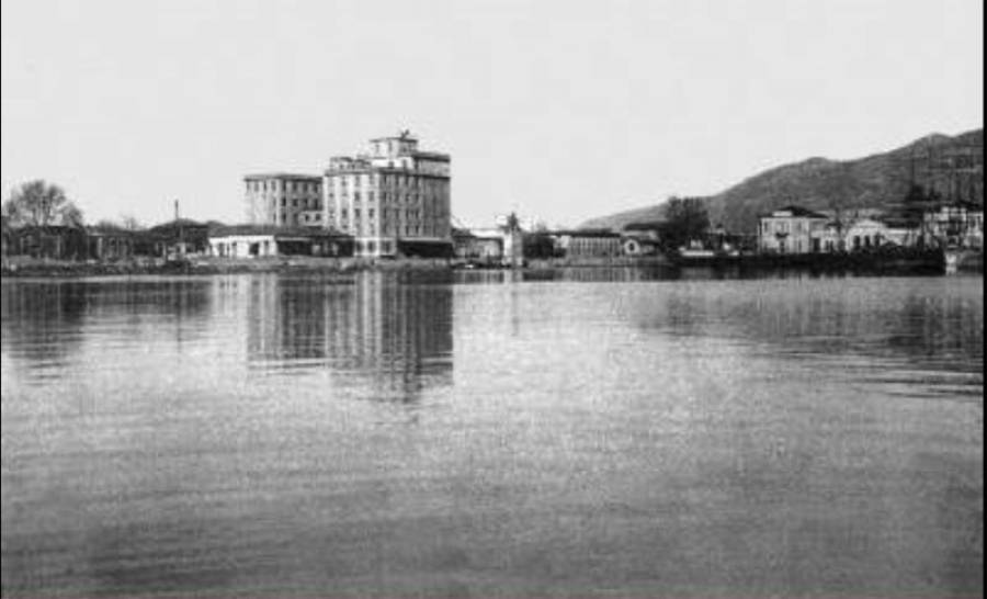 Το συγκρότημα των μύλων της "Ευαγγελίστριας" τη δεκαετία του 1930, από άλλη γωνία.