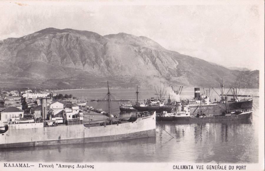 Το λιμάνι της δεκαετίας του 1930 από την άλλη πλευρά. Με λήψη μάλλον από τους μύλους "Ευαγγελίστρια" και κυρίαρχο στοιχείο τα ατμόπλοια.