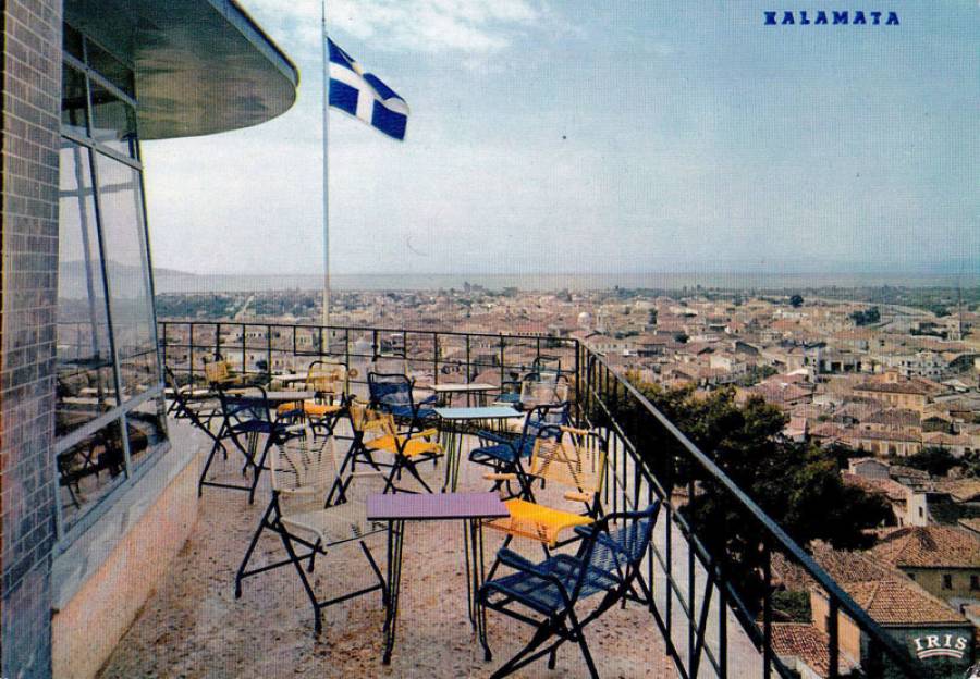 Το αναψυκτήριο στο Κάστρο της Καλαμάτας, από καρτ ποστάλ της δεκαετίας του 1960. Κατασκευάστηκε στη νοτιοδυτική γωνία του Κάστρου τη δεκαετία του 1950 αλλά κατεδαφίστηκε αργότερα.