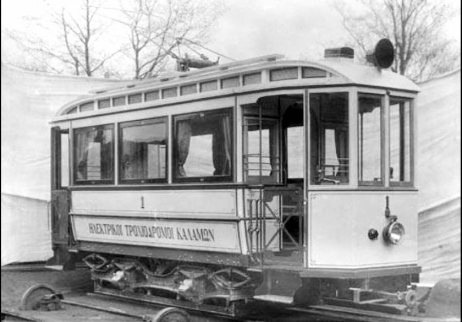 Ισως εργοστασιακή η φωτογραφία, Siemens η εταιρεία. Στην αριστερή πλευρά υπάρχει η πινακίδα "Ηλεκτρικοί τροχιόδρομοι Καλαμών" και επάνω ο αριθμός "1". Είναι το πρώτο βαγόνι της σειράς.