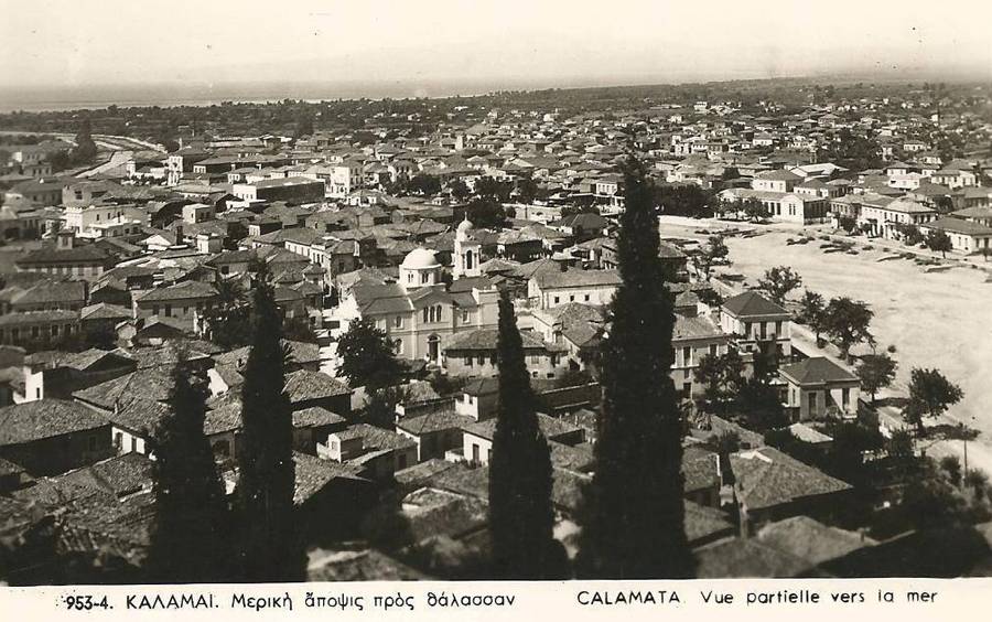 Διακρίνεται μεγάλο μέρος της πόλης, ο Νέδοντας απλωμένος και οφιοειδής προς τα νότια, σπίτια με... κεραμίδια.