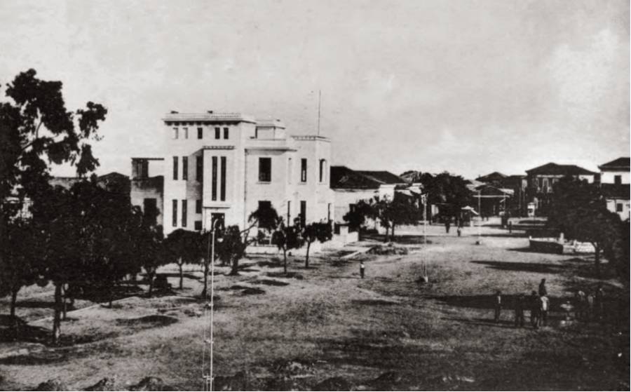Εχει ήδη κατασκευαστεί το κτήριο της Εθνικής Τράπεζας (η κατασκευή άρχισε το 1927) και η περιοχή έχει φυτευτεί με ακακίες (υπήρχαν μέχρι τη δεκαετία του 1960) και ευκαλύπτους. Στην άκρη δεξιά διακρίνεται η πέτρινη εξέδρα για τις παραστάσεις της Φιλαρμονικής (που ιδρύθηκε το 1910). Φαίνεται να βρίσκεται στη... μέση της πλατείας γιατί ακριβώς πίσω δυτικά υπήρχαν δημοτικά μαγαζιά που κατεδαφίστηκαν αργότερα.