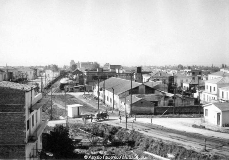 Σε πρώτο πλάνο στο κτήριο της Ηλεκτρικής Εταιρείας που στεγάζει σήμερα το Δημοτικό Θέατρο. Πίσω το κτήριο του παγοποιείου “Ολυμπος”, στη θέση του οποίου κατασκευάστηκε το Δικαστικό Μέγαρο. Ακόμη πιο πίσω το μηχανοστάσιο των τρένων που... παραχώρησε τη θέση του στο Διοικητήριο. Και στο βάθος διακρίνονται λόγω... ύψους οι δύο μύλοι “Ευαγγελιστρίας” και “Φερδούρου-Αποστολάκη”. Ο πρώτος σε εγκατάλειψη σήμερα και ο δεύτερος φιλοξενεί εμπορική επιχείρηση.
