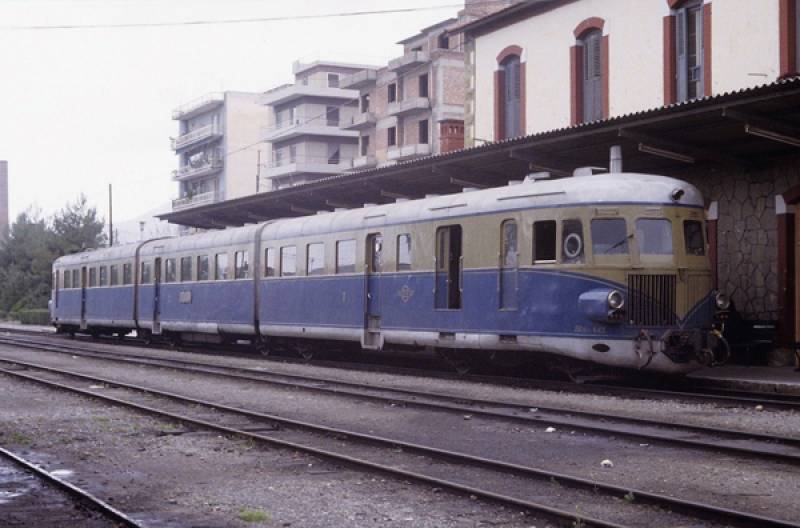 Η οτομοτρίς στον κεντρικό σιδηροδρομικό σταθμό Καλαμάτας κάπου τη δεκαετία του 1970. [Φωτό από το eΒay]
