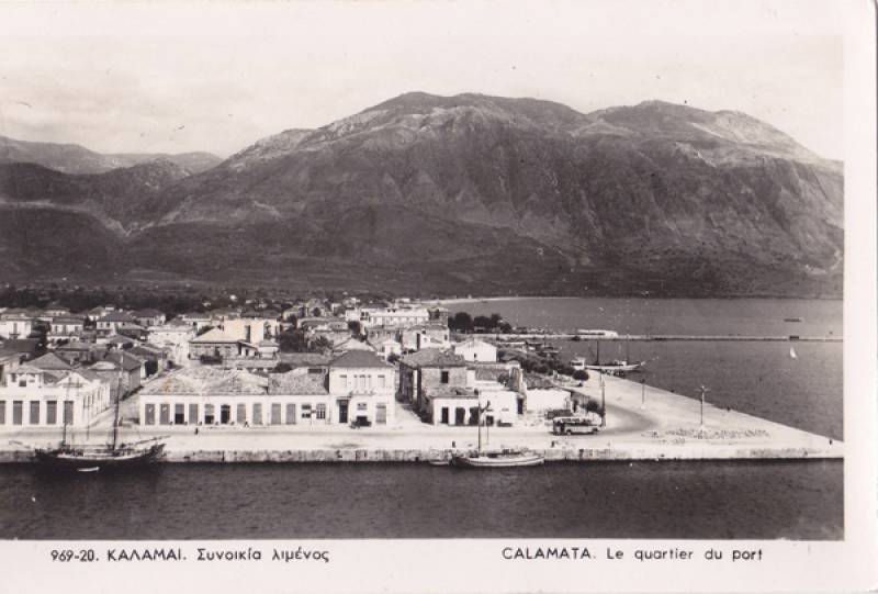 Η Παραλία προ πολυκατοικιών, με τις αποθήκες επεξεργασίας σταφίδας και σύκων στην ανατολική πλευρά του λιμανιού. Στη θέση τους είναι σήμερα η Τσαμαδού. [Από καρτ ποστάλ στο eΒay]