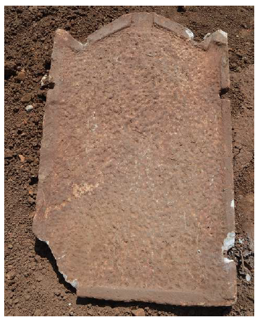 7. Μαρμάρινη αετωματική στήλη, η οποία εικάζεται ότι λειτουργούσε ως λεύκωμα με την επικόλληση δέρματος για την αναγραφή κειμένου σχετικού με κανονισμό ή πρόγραμμα λειτουργίας των χώρων της Παλαίστρας