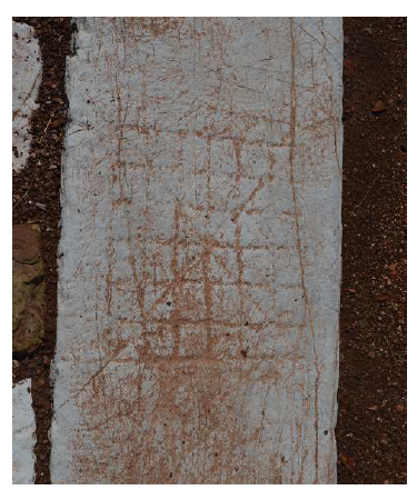 9. Παιχνίδι για πεσσούς, χαραγμένο στο λίθινο έδρανο της βόρειας πλευράς της αίθουσας διδασκαλίας