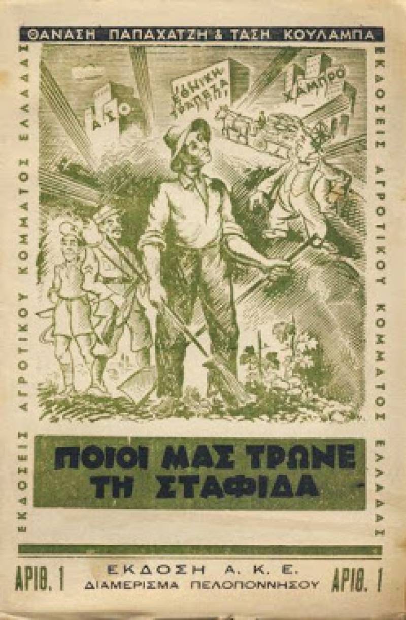 (912) Θανάση Παπαχατζή - Τάση Κουλαμπά "Ποιοι μας τρώνε τη σταφίδα" / Εκδοση Αγροτικού Κόμματος Ελλάδος (ΑΚΕ) - Τμήμα Πελοποννήσου 1946