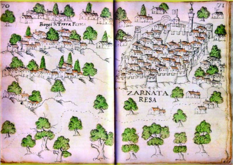 «Giunta che fù l’armata adi 20 Settembre 1685 sotto di Zernatta chiamò il dragomano et lo spedi alla fortezza soprascritta per intendere il loro pensiero, essendo questa fortezza in frà terra. Et nel medemo tempo venero li comandanti al obbedienza del capitano generale accompagnati da molti greci et persone di loro consideratione. Et introdutosi dal capitano generale rendendosi ottenero il loro passagio con sue armi è bagaglio et hebbero l’imbarco sopra vaselli conducendoli per la parte di Barbaria. Et adi 21 Settembre il capitano generale à cavallo con molta nobiltà è scorta si portò alla fortezza à prendere il posesso et armatola. Essendo fortezza sopra una collina, lontana dal mare 4 millia, ricca, abbondevole di vitto è godibile».