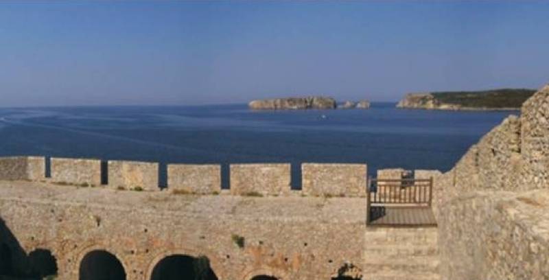 «Είναι φρούριο πολύ ισχυρό αφού έχει και εσωτερικά τείχη, όπου κατέφευγε ο κόσμος για να αποφεύγει τις βόμβες. Εχει θαυμαστές πυροβολαρχίες τόσο προς την ξηρά όσο και προς τη θάλασσα. Στην πλευρά του λιμανιού υπάρχει ένας ερειπωμένος οικισμός, ενώ άλλος οικισμός, από την άλλη πλευρά του κάστρου προς τη θάλασσα, κατοικείται από Ελληνες. Το κάστρο αυτό είναι σπουδαίο εμπορικό κέντρο, μ’ ένα πολύ ευρύχωρο λιμάνι και γι’ αυτό ξεκινούσαν από εκεί πολλές επιδρομές και μεγάλες αιχμαλωσίες σκλάβων από τα μέρη του κόλπου του Λέοντος και της Απουλίας. Με την κατάληψη του Νέου Ναβαρίνου εξέλειψε η αιτία τόσων αποτρόπαιων εγκλημάτων».