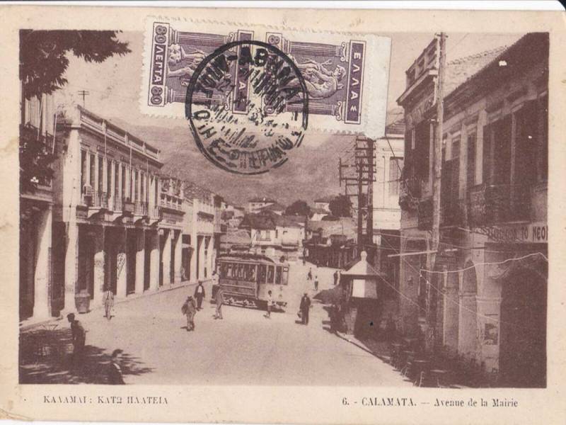 Το τραμ στη συμβολή Αριστομένους και 23ης Μαρτίου τη δεκαετία του 1910.