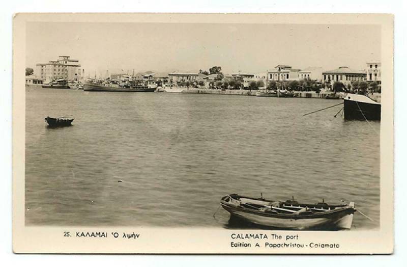 Μια εικόνα του λιμανιού της Καλαμάτας, μάλλον γύρω στα 1930. [Φωτό από το eΒay]