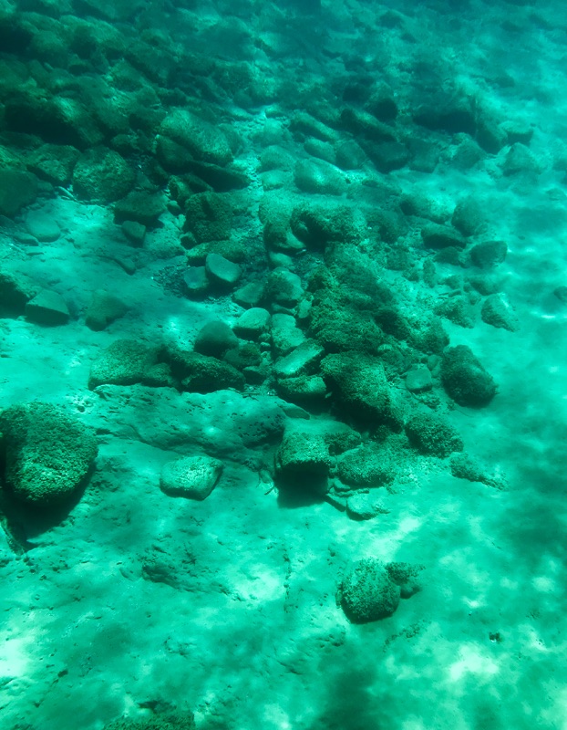 Μια σειρά πασσάλων πακτωμένων στο βυθό της θάλασσας που εξέτασα μου επέτρεψε να διαπιστώσω τη συμμετρική τοποθέτησή τους στον αμμώδη βυθό. Είναι ξύλινοι, σε σχήμα ισοτετράπλευρο, με πλάτος πλευράς 14-17 εκ. και βρίσκονται πακτωμένοι σε κανονικές αποστάσεις (εικ. 3).