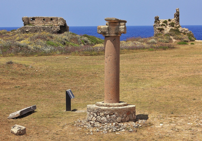 Στα ερείπια του καθεδρικού ναού στέκονται δυο μονολιθικές κολόνες από ερυθρωπό συενίτη (εικ. 11) από τις οποίες η μια διατηρείται ακέραιη. Η μέτρηση με μετρολέιζερ μου έδωσε ύψος 8,05 μ., όσο είναι ο ολόκληρος κίονας του ναυάγιου. Αξίζει να τονιστεί ότι παρόλο που σε πολλά σημεία της αρχαίας Τύρου υφίστανται ακόμη πάρα πολλοί μονολιθικοί κίονες από γρανίτη, μάρμαρο ή πωρόλιθο, μόνον ο μεσαιωνικός καθεδρικός ναός της Τύρου, που ο δόγης βρήκε κατεστραμμένο, έχει κολόνες ίδιας σύστασης και διαστάσεων ερυθρωπού συενίτη με αυτές στο κάστρο και ναυάγιο της Μεθώνης.