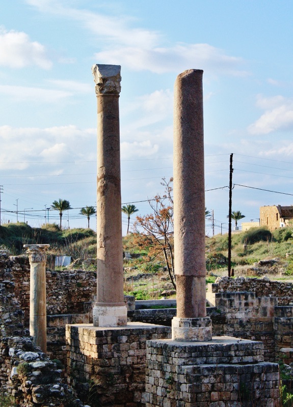 Ο ερειπωμένος μεσαιωνικός χριστιανικός καθεδρικός ναός της Τύρου έχει πολλά σπασμένα κομμάτια από μονολιθικές ερυθρωπές γρανιτένιες κολόνες, διασκορπισμένες στο έδαφος. Προέρχονται από ρωμαϊκό κτήριο επάνω στο οποίο κτίσθηκε ο ναός που αριθμούσε 12 γρανιτένιες κολόνες σε δυο σειρές. Οι διάμετροί τους είναι 0,82-0,86 μ. για τον κορμό και 0,94-0,96 μ. για τον αστράγαλο, την διόγκωση στις καταλήξεις του κίονα. Διαστάσεις ακριβώς ίδιες στο χρώμα και στην ορυκτολογική σύσταση με τις γρανιτένιες κολόνες στη Μεθώνη, μια στημένη στην Μεγάλη πλατείων Οπλων του κάστρου (εικ. 10) που έχει μέση διάμετρο 0,80 μ. –με αποκλίσεις 0,78-0,83 μ. κατά μήκος της– και διάμετρο του αστράγαλου βάσης 0,95 μ., και αυτές του ναυάγιου από όπου ανασύρθηκε ο κίονας τοποθετημένος στο κάστρο.