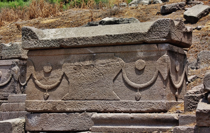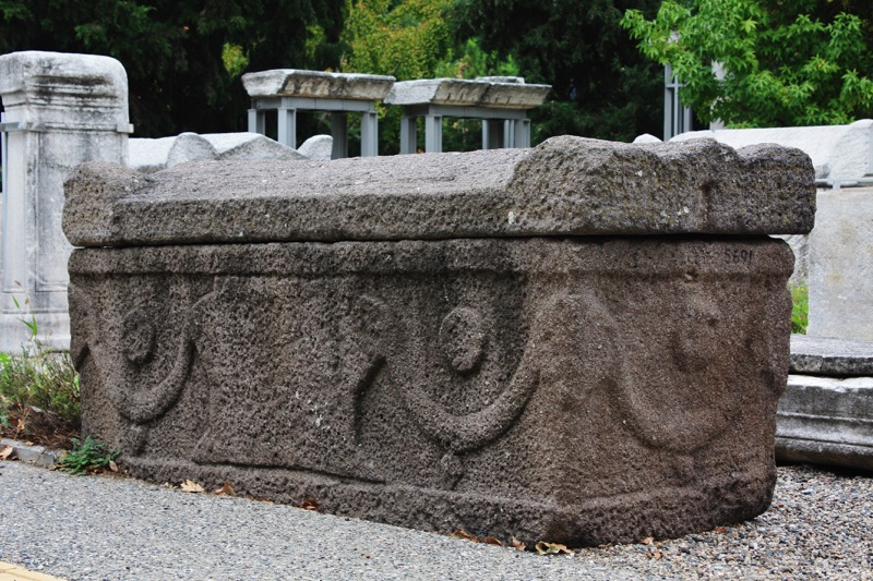 Η σκαλιστή πλευρική διακόσμηση καλύπτει και τις τέσσερις πλευρές με ανθοπλόκαμους και τύμπανο σε μορφή βωμού για χάραξη κείμενου σχετικού με τον νεκρό ή την νεκρή. Για τον συγκεκριμένο τύπο σαρκοφάγου θα πρότεινα μια πιο πρώϊμη περίοδο. Σοβαρή ένδειξη χρονόλογησης αποτελεί η πολύ χαρακτηριστική μορφή βωμού που έχει το τύμπανο σαν επιφάνεια που θα υποδεχτεί κείμενο. Αυτό το σχήμα παραπέμπει στην περίοδο των μεγάλων σκαλιστών τεφροδόχων και των ταφικών βωμών οι οποίοι έχουν τέτοιας μορφής επιφάνεια για κείμενο, και η περίοδος ακμής τους, o πρώτος μεταχριστιανικός αιώνας, προηγήθηκε άμεσα της εμφάνισης των σαρκοφάγων. Κατά συνέπεια, μια πλέον δόκιμη χρονολογία των σαρκοφάγων τύπου Ασσου με τύμπανα σε μορφή βωμού θα ήταν το 100-200 μ. Χ. Κάποιο ρωμαϊκό εμπορικό πλοίο, του δεύτερου μ. Χ. αιώνα, μετέφερε σαρκοφάγους από την Ασσο με προορισμό κάποιο λιμάνι της ιταλικής χερσόνησου, πιθανόν το Μπρίντιζι, τη Ραβένα ή την Οστια, το λιμάνι της αρχαίας Ρώμης. Η Φύση διαφώνησε: τις έστειλε στο βυθό της Μεθώνης.