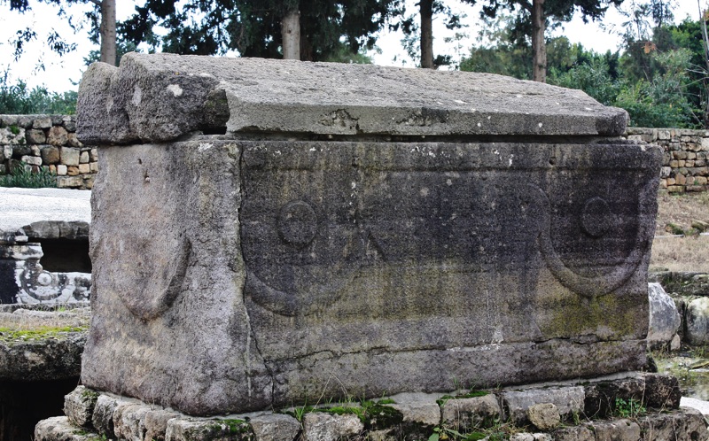 Ο John Bryan Ward-Perkins πρότεινε το 1967 σαν τόπο προέλευσης των σαρκοφάγων Μεθώνης την Ασσο Μ. Ασίας και χρονολογία την περίοδο 180-250 μ. Χ. Μετά από έρευνά μου, διαπίστωσα ότι παρόμοιου τύπου και υλικού σαρκοφάγοι υπάρχουν στην Αλεξάνδρεια, στην εκκλησία Σαν Βιτάλε Ραβένας, στη Θεσσαλονίκη (εικ. 5), στη Μυτιλήνη, στη Μήθυμνα Λέσβου (εικ. 6), στη νεκρόπολη Al-Bass της Τύρου (εικ. 7), στο Εθνικό μουσείο Βηρυτού (εικ. 8) και ασφαλώς στην Ασσο (εικ. 9) από όπου προέρχεται το υλικό, ανδεσίτης λίθος, με κοπή και σμίλευσή του σε τοπικά εργαστήρια. Τα καλύμματά τους είναι λειασμένα στην εξωτερική τους επιφάνεια σε μορφή δίρριχτης στέγης, με τις τέσσερις γωνίες υπερυψωμένες σε ακρωτήρια.