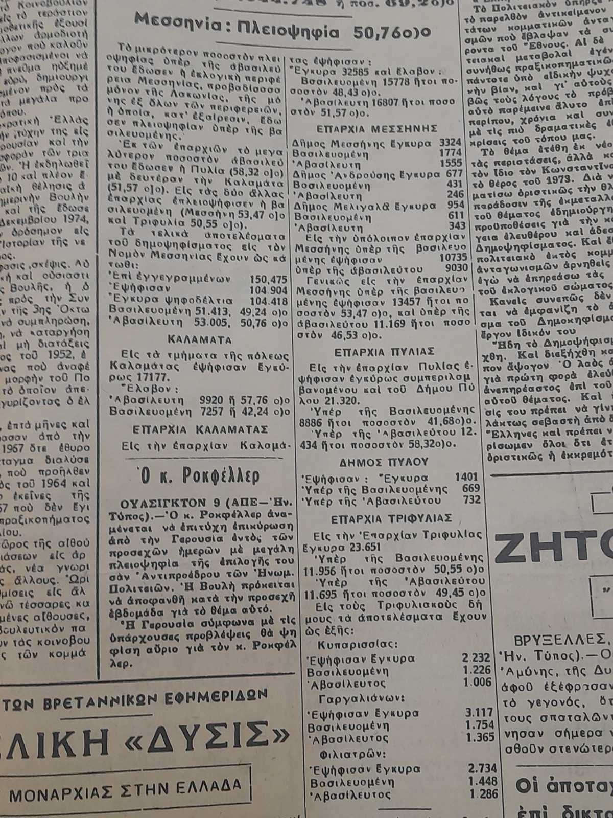 ΑΝΑΛΥΤΙΚΑ ΤΑ ΑΠΟΤΕΛΕΣΜΑΤΑ ΤΟΥ ΔΗΜΟΨΗΦΙΣΜΑΤΟΣ 1974 ΑΝΑ ΕΚΛΟΓΙΚΗ ΠΕΡΙΦΕΡΕΙΑ