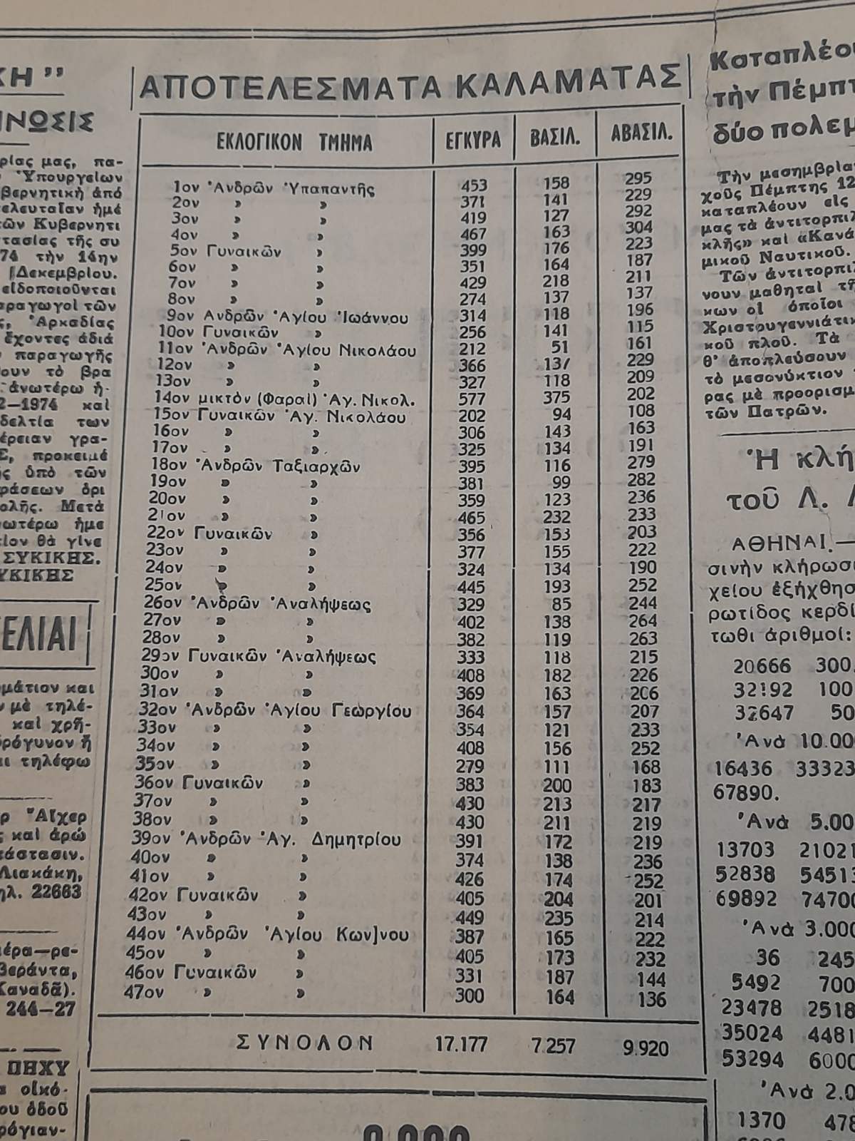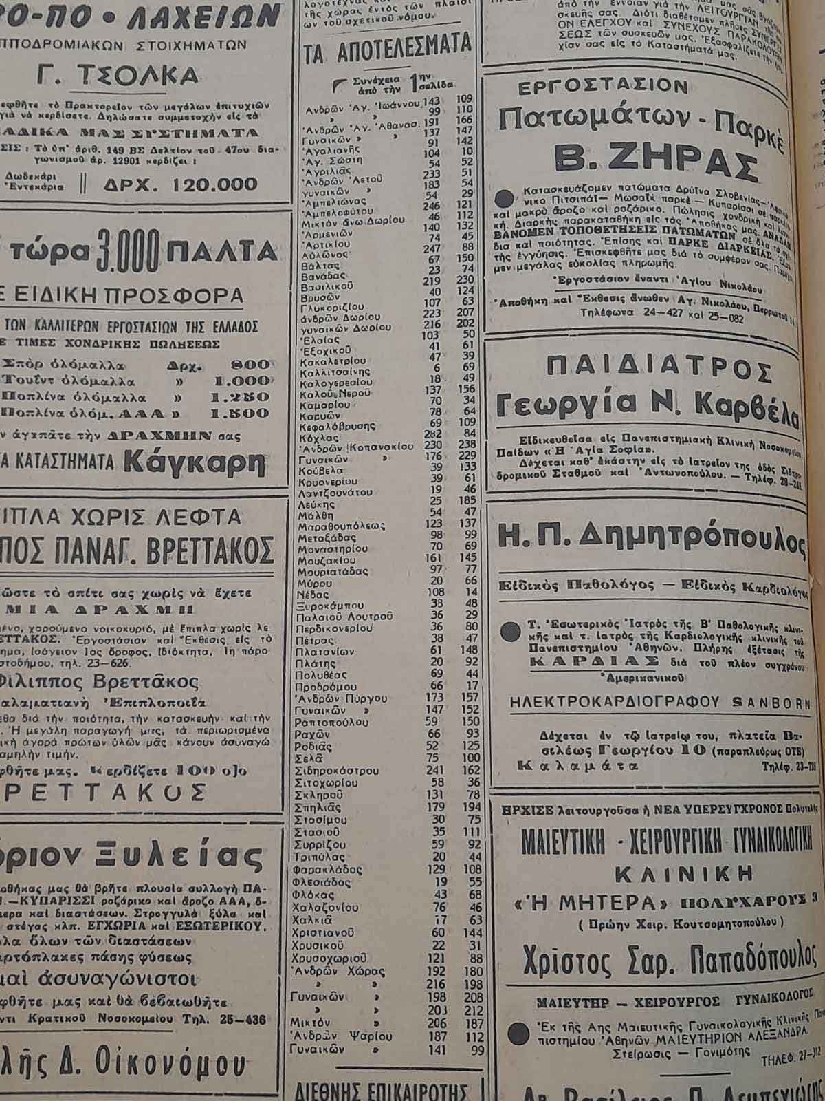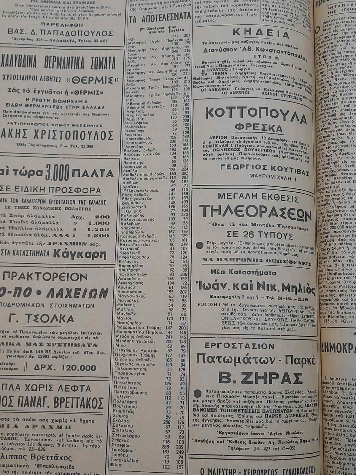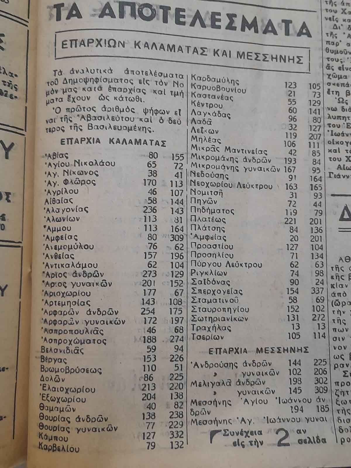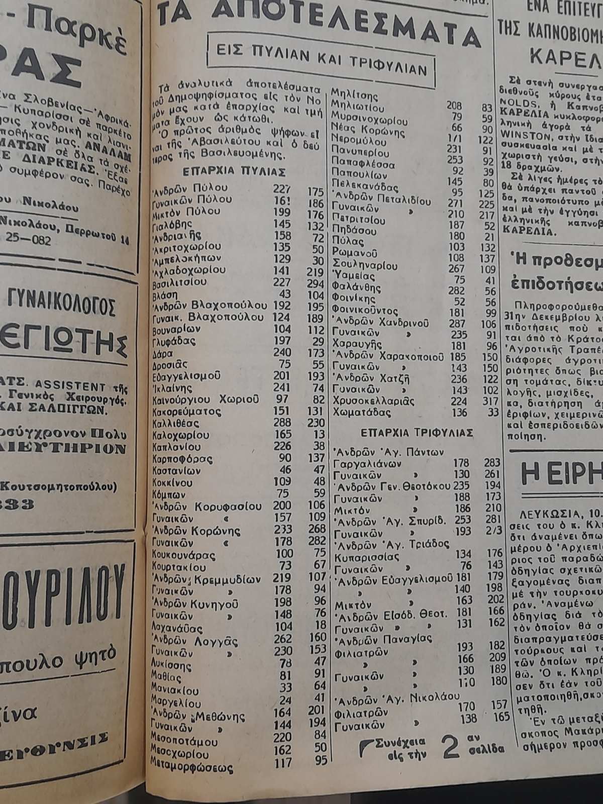 Ακολουθούν φωτογραφίες από δημοσιεύματα της εφημερίδας "Θάρρος" της εποχής με επιμέρους αποτελέσματα από περιοχές της Μεσσηνίας από το αρχείο του Σωτήρη Θεοδωρόπουλου: