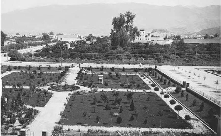 Δημιουργήθηκε εκείνη περίπου την εποχή, όπως μαρτυρούν τα νεοφυτεμένα παρτέρια. Αριστερά, ο κάθετος άξονας της οδού Αριστομένους συναντά τον οριζόντιο της οδού Κρήτης. Σε δεύτερο πλάνο, διακρίνονται οι εγκαταστάσεις της Εταιρείας Οίνων και Οινοπνευμάτων (πρώην Ζάννου και Ρως).