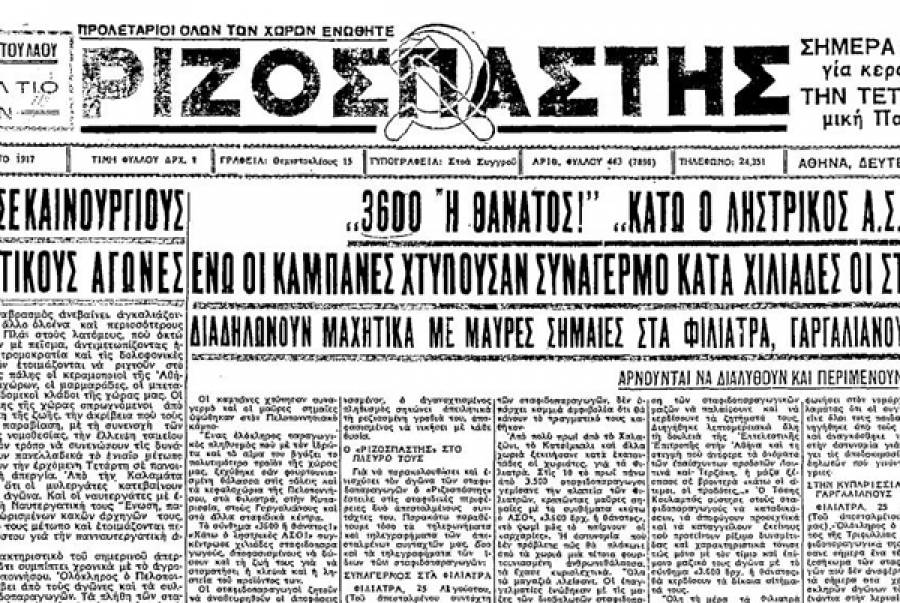 Οι σταφιδοπαραγωγοί αποτείνονται στην εργατική τάξη ζητώντας την ενίσχυσή της. Μια πανεργατική έμπραχτη εκδήλωση της εργατικής αλληλεγγύης προς τη σταφιδοπαραγωγική αγροτιά της Πελοποννήσου θα παίξει αποφασιστικό ρόλο για το αντιφασιστικό κέρδισμά της. Κατά συνέπεια στις εργατικές οργανώσεις πέφτουν σοβαρές ευθύνες.