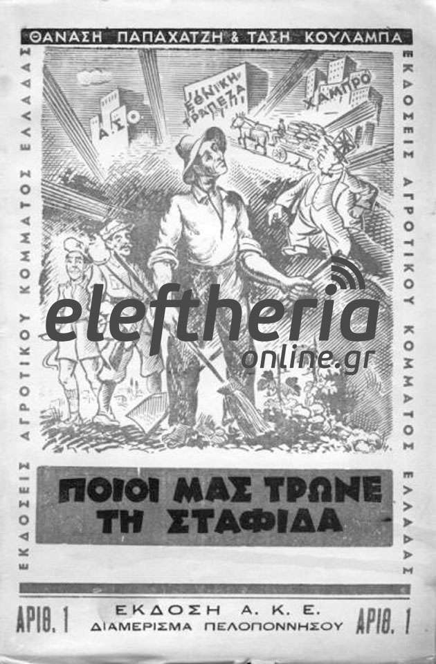 (22) Θανάση Παπαχατζή - Τάση Κουλαμπά "Ποιοί μας τρώνε τη σταφίδα" / Εκδοση Αγροτικού Κόμματος Ελλάδος (ΑΚΕ) - Τμήμα Πελοποννήσου 1946.