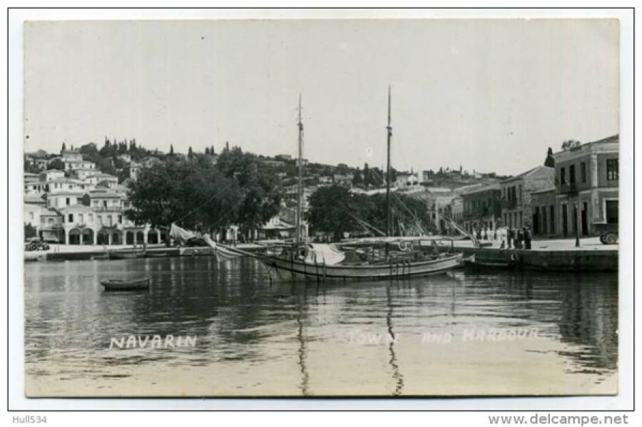 Μια εικόνα της Πύλου από τη δεκαετία 1920-1930, όπως την έχει απαθανατίσει ο φωτογραφικός φακός μέσα από το λιμάνι.