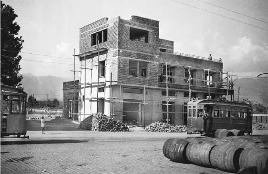 25 Ιανουαρίου 1939 κτίζεται το Λιμενικό Ταμείο (πρόσθια όψη, προς νότο). Δύο τραμ διασταυρώνονται σε αυτό το σημείο.