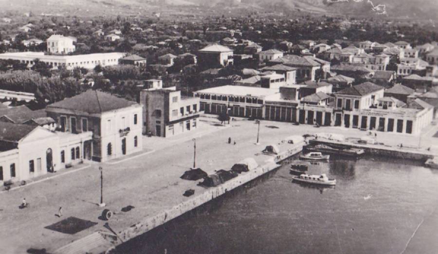 Το λιμάνι της Καλαμάτας, μάλλον τη δεκαετία του 1950. Το κτηριακό συγκρότημα του Λιμεναρχείου έχει αποκτήσει... γείτονα το κτήριο του Λιμενικού Ταμείου που κατασκευάστηκε το 1939.