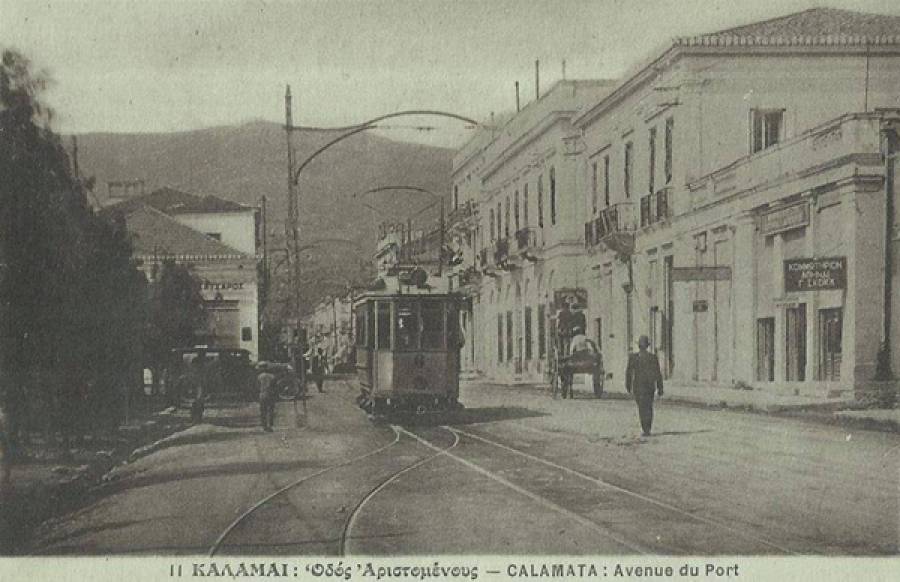 Το κτήριο που στεγάζει σήμερα την Τράπεζα της Ελλάδος, τότε στέγαζε καταστήματα όπως φαίνεται από τις πινακίδες αλλά και τις πόρτες (η Τράπεζα της Ελλάδος ιδρύθηκε το 1928 και υποκατάστημα στην Καλαμάτα άνοιξε αργότερα).
