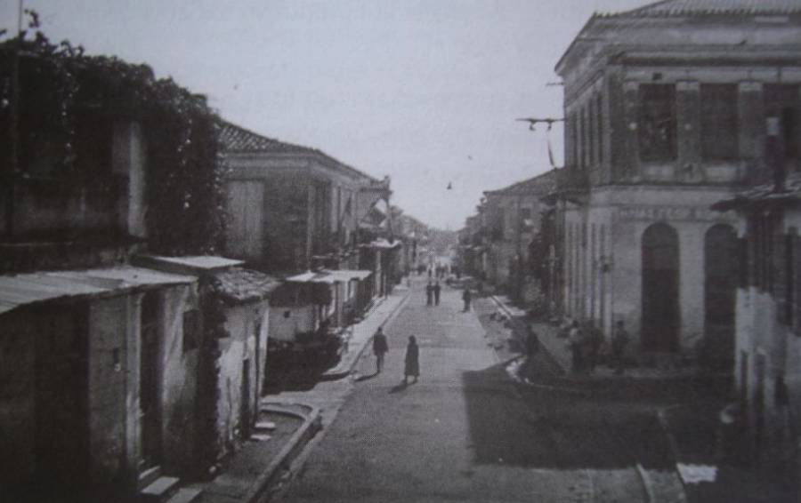 Στο ύψος της διασταύρωσης με τη Λακωνικής, με τις γραμμές του τραμ ακόμη στη θέση τους.