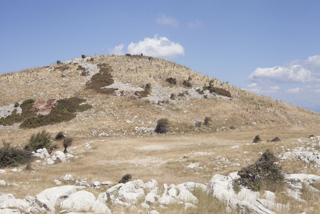 Συγκεκριμένα, στη νοτιότερη κορυφή του Όρους, σε υψόμετρο που αγγίζει τα 1.400 μ. και με πανοραμική θέα σε όλη την ηπειρωτική Πελοπόννησο, βρίσκεται ο βωμός τέφρας για τις θυσίες ζώων προς τιμήν του Δία, ενώ στο οροπέδιο χαμηλότερα έχουν αποκαλυφθεί τα μνημειακά οικοδομήματα του κάτω ιερού, όπου ελάμβαναν χώρα κατά την αρχαιότητα φημισμένοι αθλητικοί αγώνες, τα Λύκαια. Φέτος το καλοκαίρι, στο μέσο του βωμού και πλησίον μίας πλατφόρμας λαξευμένης στο φυσικό βράχο, εντοπίστηκε για πρώτη φορά και ανασκάφηκε ανθρώπινη ταφή (πιθανόν άνδρα) με προσανατολισμό Ανατολή-Δύση. «Φανταστείτε ότι έχουμε την κορυφή ενός υψώματος η οποία έχει διαμορφωθεί ως ένας βωμός τέφρας, που είναι το καμένο χώμα από τις θυσίες. Είναι μια αρκετά μεγάλη έκταση, η οποία δεν έχει πλήρως ερευνηθεί. Στην κορυφή αυτού του υψώματος όπου διαμορφώνεται ο βωμός, στο κέντρο του κυκλικού χώρου, βρέθηκε αυτή η ταφή», συμπληρώνει η κ. Καραπαναγιώτου, που πληροφορεί ότι οι πρώτες ανασκαφές έγιναν στις αρχές του 20ού αιώνα από τον αρχαιολόγο Κωνσταντίνο Κουρουνιώτη, ο οποίος πραγματοποίησε ανασκαφικές τομές, εντοπίζοντας μόνον οστά ζώου.