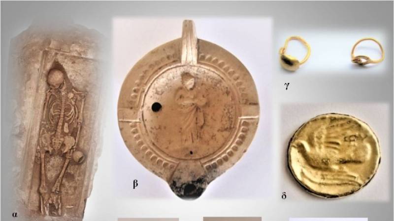 «Σε χαμηλότερο επίπεδο διερευνήθηκαν τρεις τάφοι ελληνιστικών χρόνων, εκ των οποίων ο ένας επαναχρησιμοποιήθηκε κατά τους ρωμαϊκούς χρόνους. Από τα οστεολογικά κατάλοιπα των εννέα ταφών οι δύο σκελετοί ανήκαν σε ενήλικους άνδρες, οι πέντε σε ενήλικες γυναίκες και οι δύο σε παιδιά. Μάλιστα, σε έναν από τους τάφους εντοπίσθηκε γυναικεία μαζί με παιδική ταφή», συμπληρώνει η ανακοίνωση του ΥΠΠΟΑ.