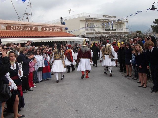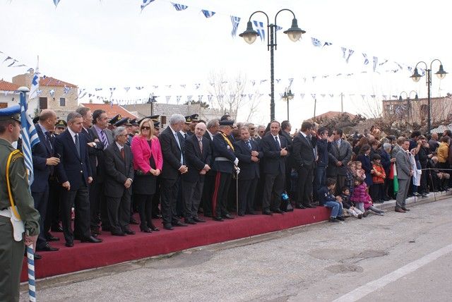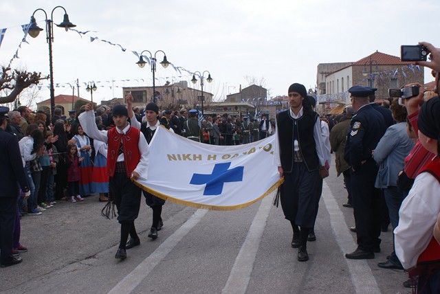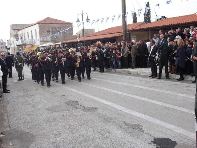 Στην κεντρική πλατεία της Αρεόπολης μετά την επιμνημόσυνη δέηση και την κατάθεση στεφάνων ακολούθησε μαθητική και στρατιωτική παρέλαση ενώ ξεχωριστή ήταν η παρουσία του μεικτού λόχου απόδοσης τιμών του ΓΕΕΘΑ και της στρατιωτικής μουσικής της ΙV ΜΠ. Ιδιαίτερη ήταν και η παρουσία της τορπιλακάτου του πολεμικού ναυτικού στις εκδηλώσεις.