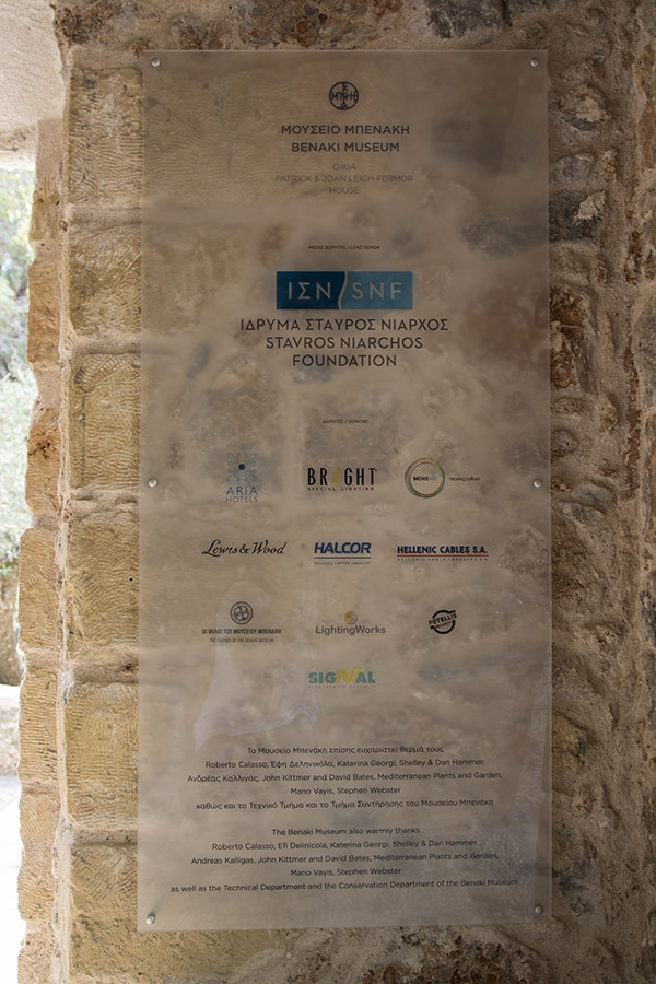 Μετά τη θετική ανταπόκριση του Ιδρύματος Σταύρος Νιάρχος (ΙΣΝ) -το οποίο εκπροσωπήθηκε χθες από την Αννα-Μαρία Κοσμόγλου- και την απόφασή του να αναλάβει εξ ολοκλήρου τη δαπάνη των εργασιών επισκευής και του νέου εξοπλισμού, ξεκίνησε τον Μάιο του 2017 η μεταφορά του περιεχομένου του σπιτιού στην Αθήνα. Το προσωπικό της Βιβλιοθήκης του Μουσείου εργάστηκε εντατικά για τη λεπτομερή καταγραφή των περίπου 6.000 τόμων, τα οποία εντάχθηκαν στις ειδικές συλλογές της Βιβλιοθήκης ως Συλλογή Leigh Fermor, ενώ παράλληλα έγινε ο διαχωρισμός των βιβλίων που επέστρεψαν στο σπίτι. Η καταγραφή των βιβλίων της Οικίας Leigh Fermor πραγματοποιήθηκε με την οικονομική στήριξη των Φίλων του Μουσείου Μπενάκη.
