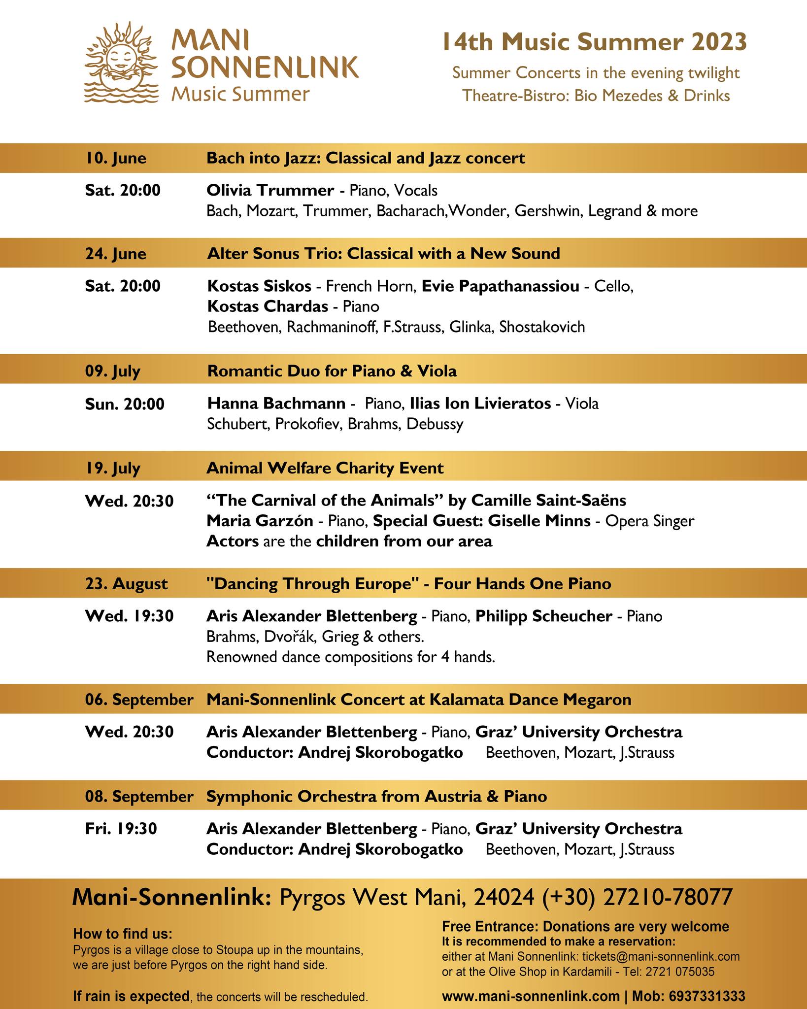 To φετινό πρόγραμμα του “Mani Sonnenlink”: