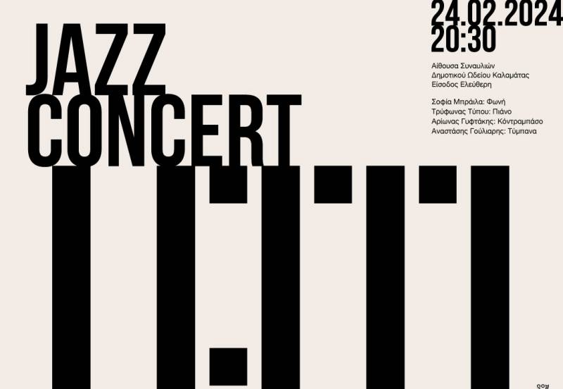 Η αίθουσα του Ωδείου μετατρέπεται σε "καλλιτεχνικό καφενείο" φιλοξενώντας ένα jazz κουαρτέτο που αποτελείται από σημαντικούς καλλιτέχνες στον χώρο της jazz μουσικής σκηνής. H τραγουδίστρια Σοφία Μπράιλα, ο πιανίστας Τρύφωνας Τύπου, ο κοντραμπασίστας Αρίωνας Γυφτάκης και ο ντράμερ Αναστάσης Γούλιαρης θα παρουσιάσουν γνωστά Jazz Standards σε πρωτότυπες ενορχηστρώσεις. Η είσοδος για το κοινό θα είναι ελεύθερη.